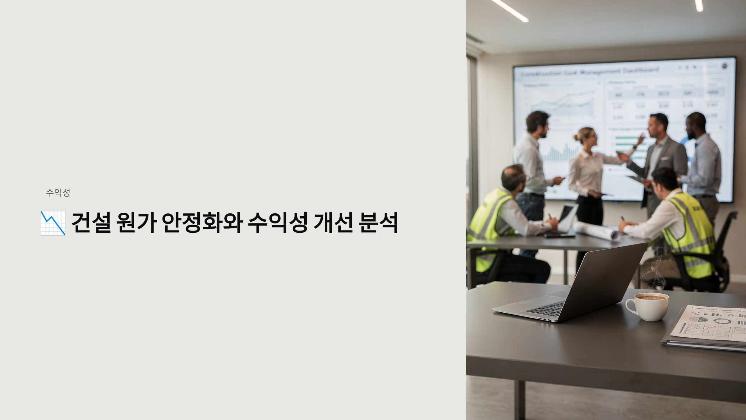 지난 몇 년간 건설사를 괴롭혔던 원자재 가격 폭등 이슈가 2026년 들어 드디어 진정 국면에 접어들었어요. 철근과 시멘트 가격이 하향 안정화되면서 DL이앤씨의 원가율은 눈에 띄게 개선되고 있답니다 📉