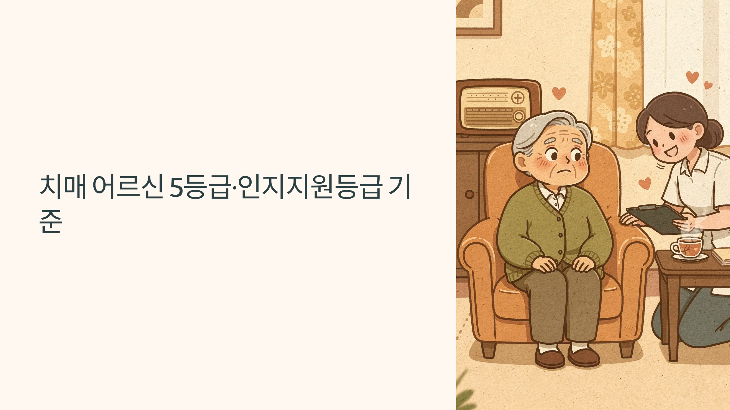 신체 기능은 멀쩡하지만 인지 능력이 떨어져 일상 유지가 어려운 치매 어르신들을 위해 정부는 별도의 점수 기준을 마련해 두고 있어요. 이것이 바로 5등급과 인지지원등급 제도예요. 🧠