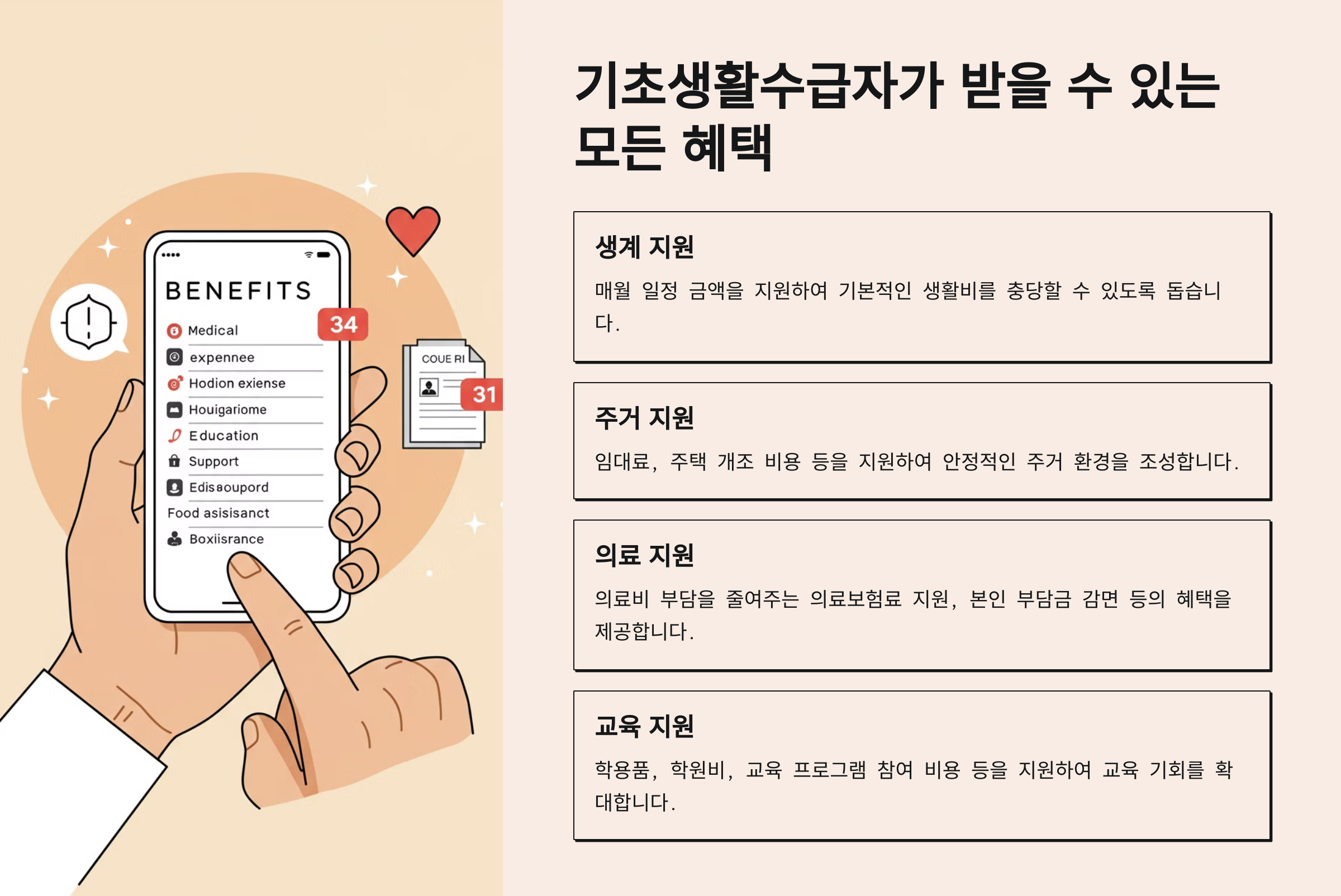 ✅ 이제 기초생활수급자가 받을 수 있는 혜택을 살펴볼게요!