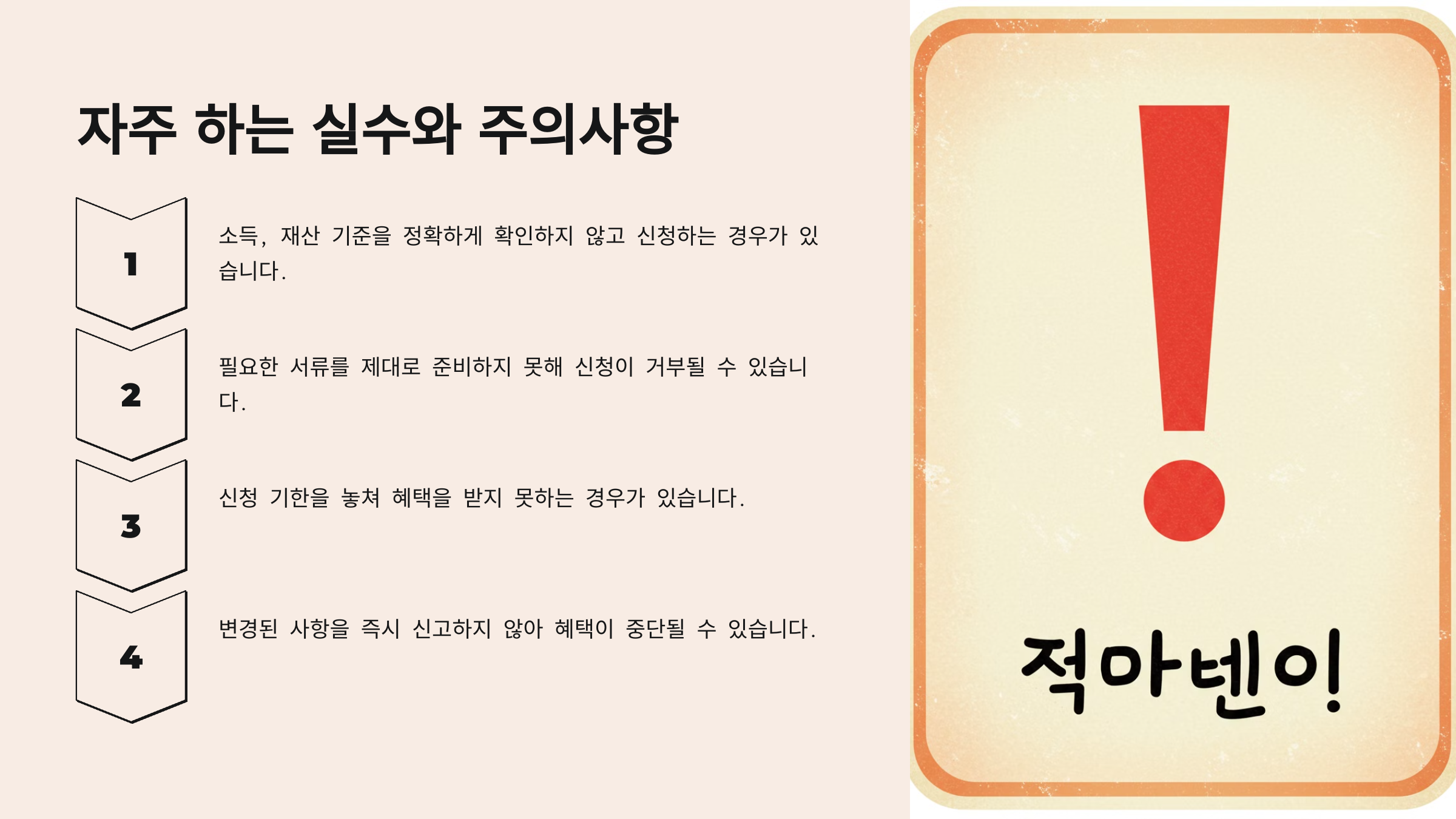 서류를 준비했다면, 이제 신청 시 주의해야 할 사항을 살펴볼까요? ✅