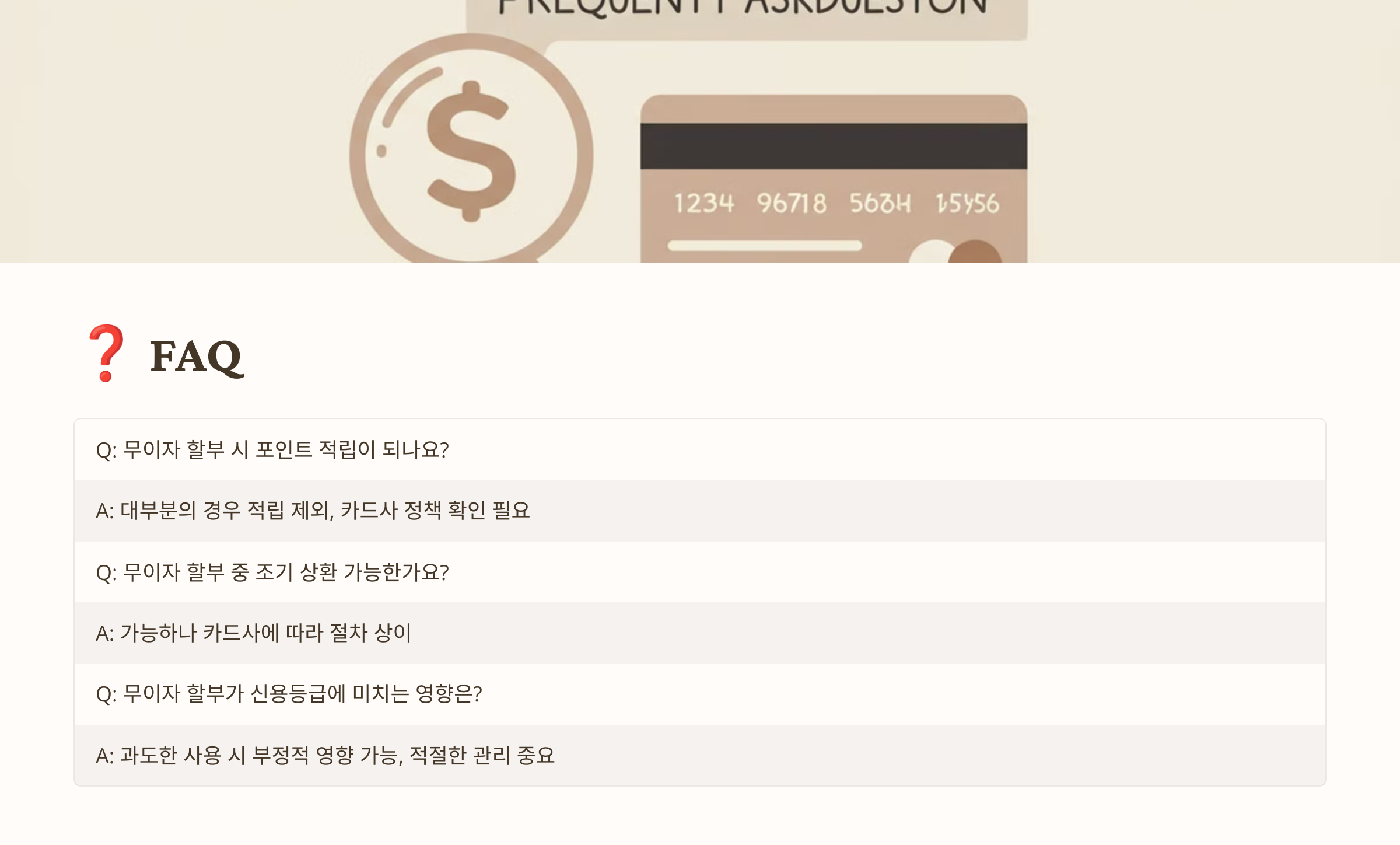 이제 무이자 할부에 대한 궁금증을 해결할 FAQ를 확인해 볼까요? ❓