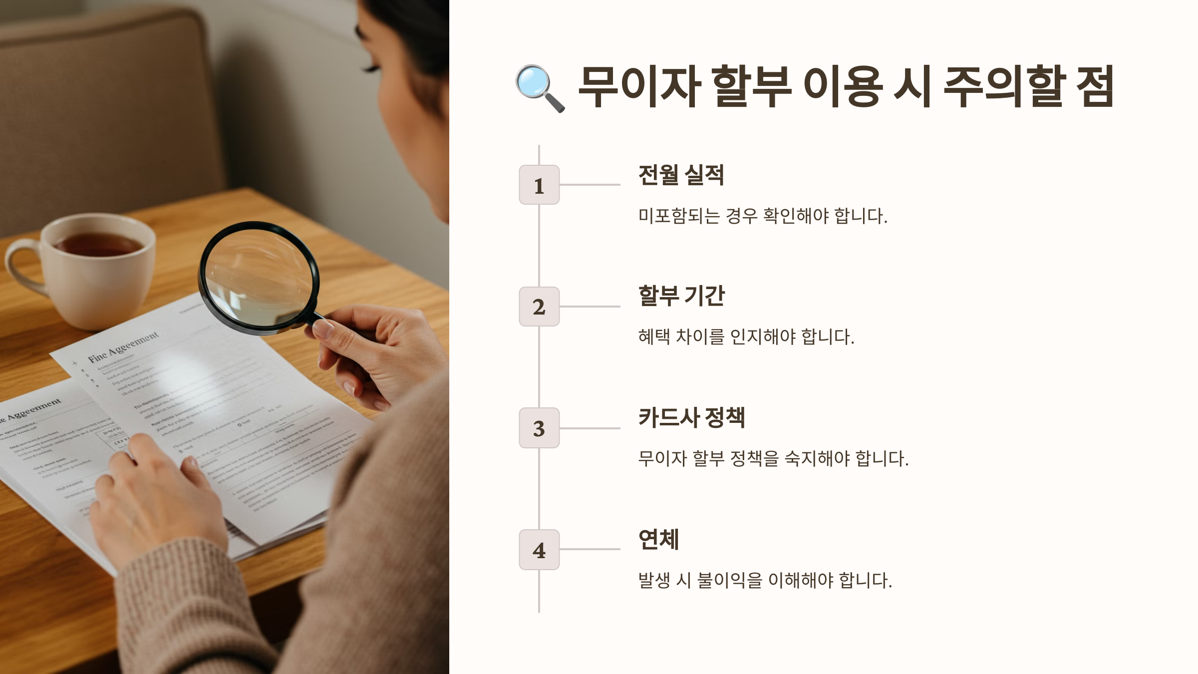 다음으로, 무이자 할부를 이용할 때 주의해야 할 점들을 알아볼까요? 📢