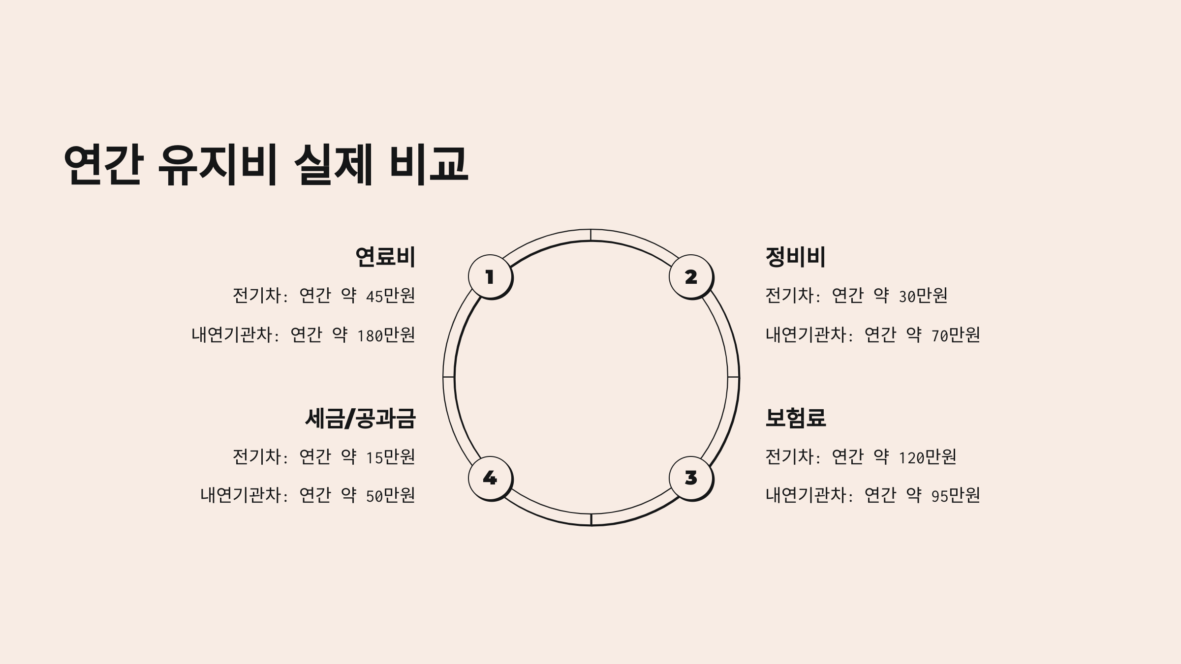 전기차 유지비는 초기 설치나 충전 인프라 여부에 따라 편차가 있지만, 전체 평균을 봤을 땐 확실히 효율적인 선택이라고 볼 수 있어요. 그럼 각 항목을 하나씩 살펴보면서 비교해볼까요? 😉