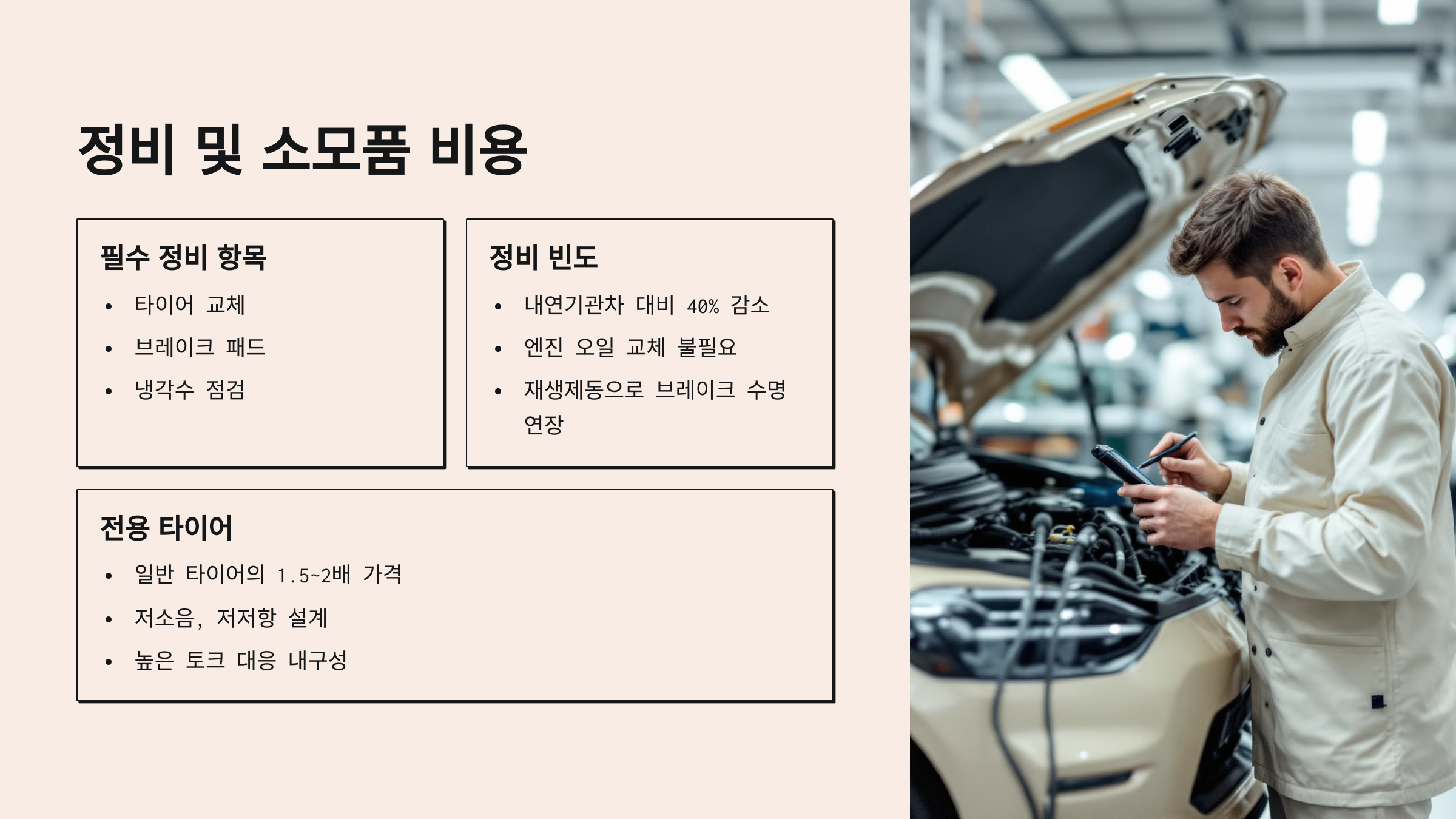 다음은 전기차의 정비비가 어떻게 절감되는지 실제 사례로 보여드릴게요! 🔧