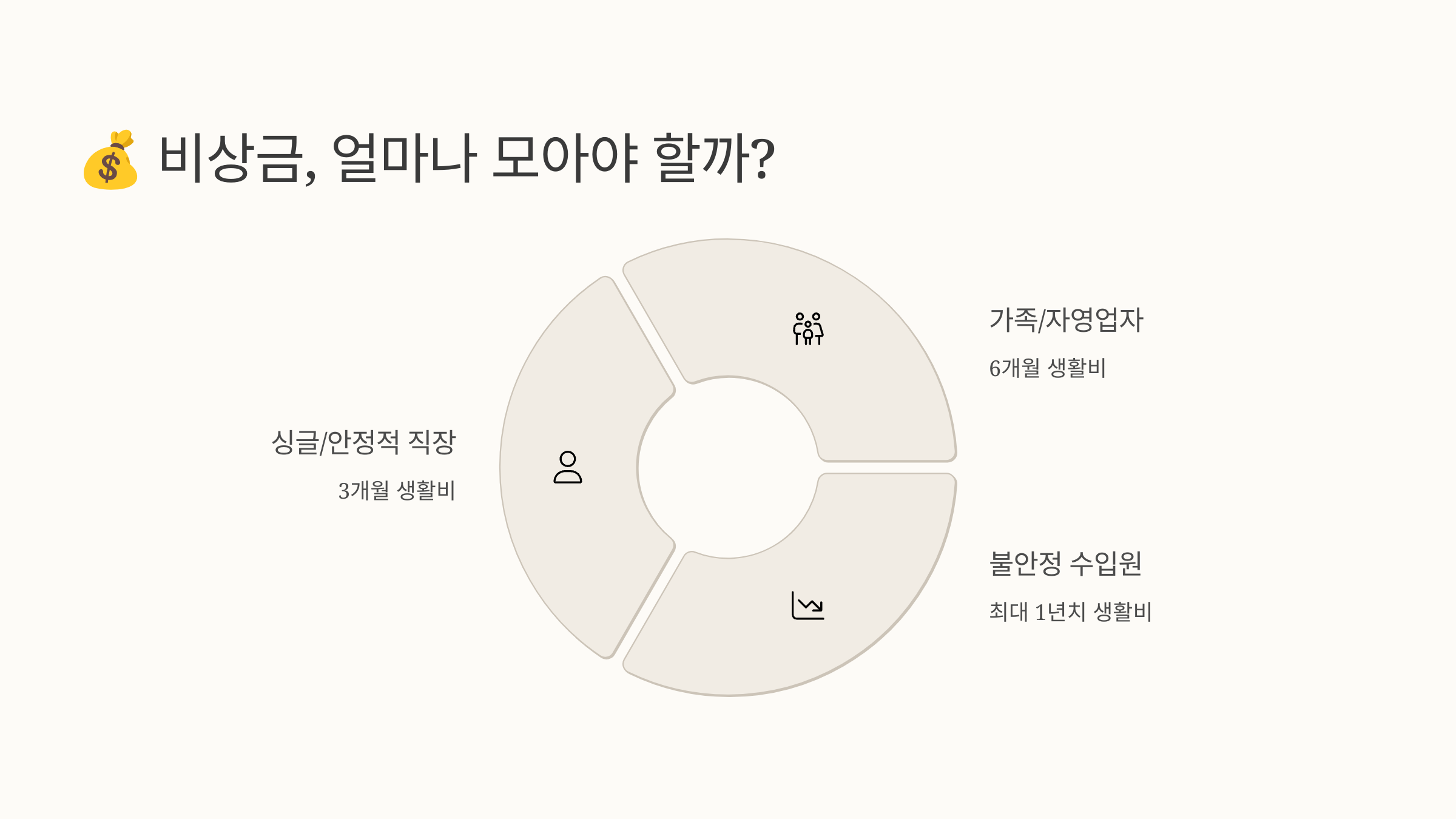 프리랜서, 자영업자처럼 고정 수입이 없는 경우라면 6개월~1년치 생활비까지 넉넉하게 준비하는 걸 추천해요. 반면, 정규직이고 부모님과 함께 살고 있다면 100만~200만 원의 기초 비상금만으로도 충분할 수 있어요.