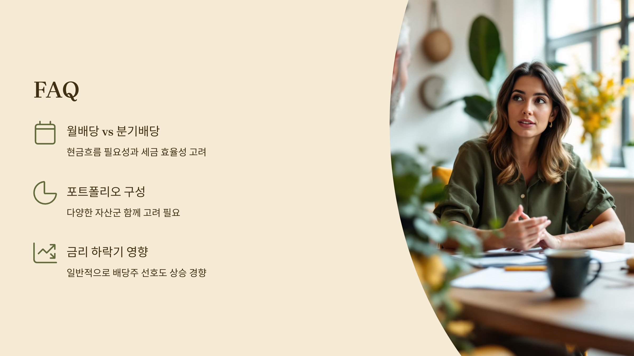 | 배당 주기 | 월/분기/연간 지급 여부 | 개인 현금 흐름에 맞게 선택 |